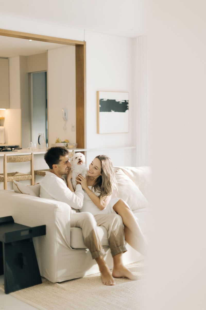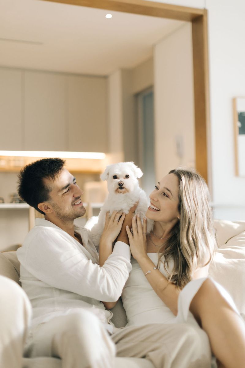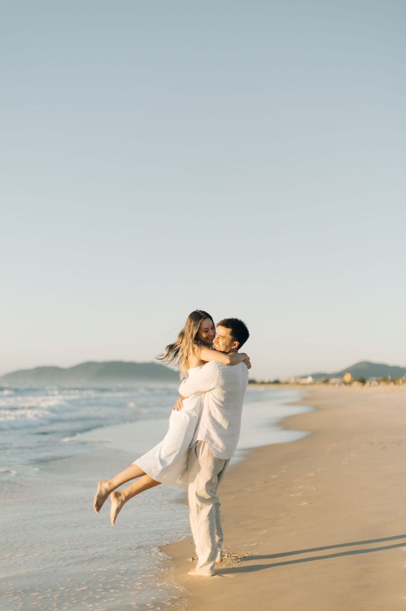 No dia 21 de março de 2025, fizemos nosso pré-wedding no lugar que mais amamos: em frente de casa, com o pé na água, sentindo a brisa do mar e sob um céu azul perfeito, iluminados pela luz suave do nascer do sol. 🌊☀️Depois, seguimos para casa, onde registramos mais momentos especiais ao lado da nossa companheira de vida, a Gaia. Um pré-wedding leve, verdadeiro e cheio de amor — do jeitinho que sonhamos. ❤️